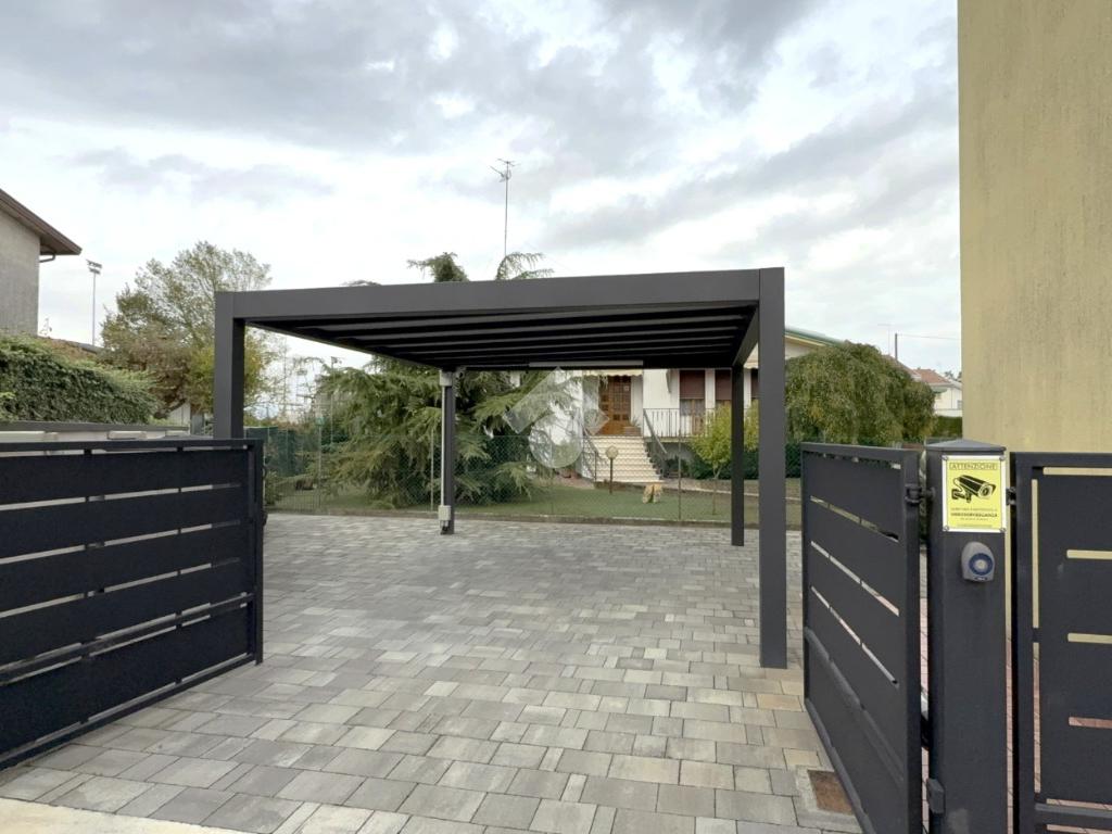 Esternamente, per accedere alla proprietà troviamo anche l'accesso carraio e pedonale indipendente con tettoia installata recentemente. Completa la proprietà giardino privato in parte verde ed in parte piastrellato di circa 150 mq.