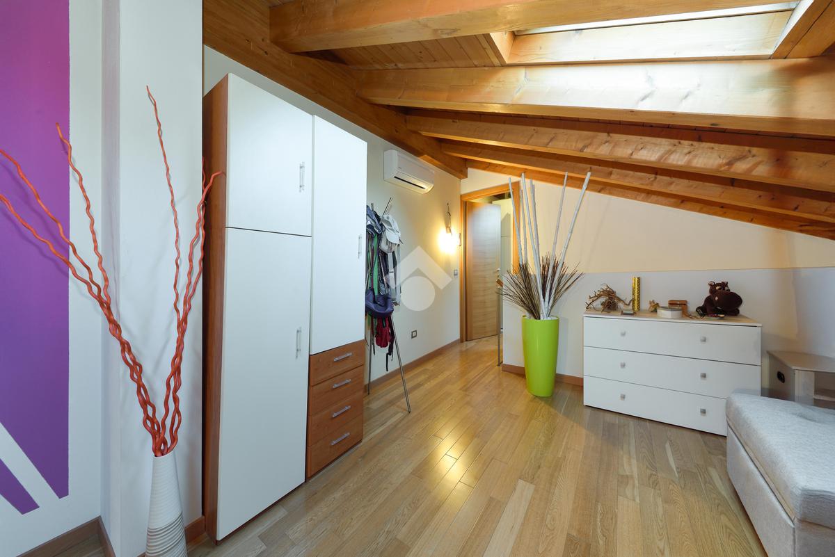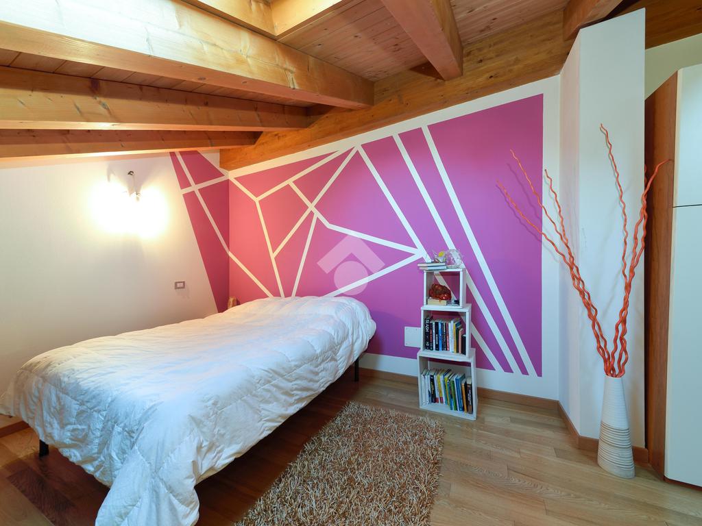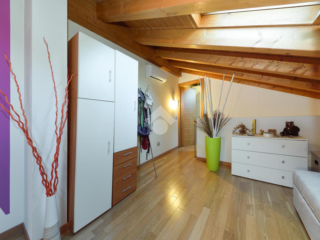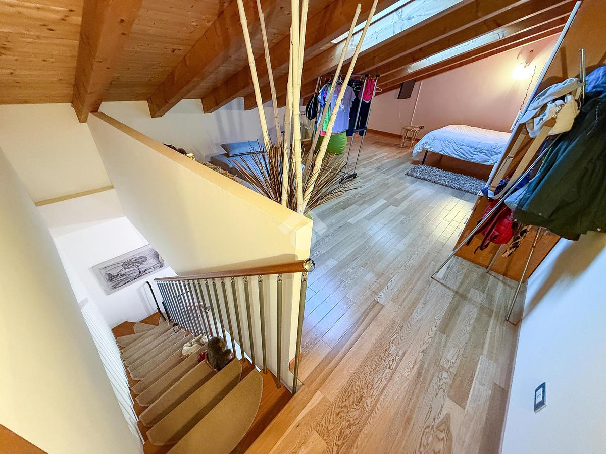Salendo al piano superiore si ha accesso alla camera caratterizzata da travi a vista. Termina il piano un secondo bagno anch'esso avente travi a vista.