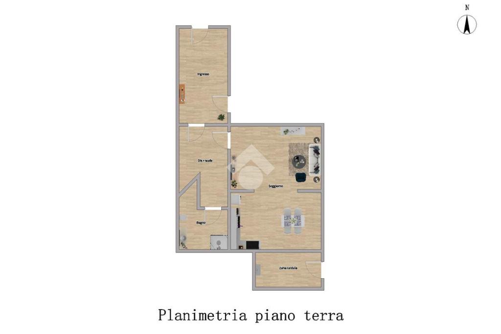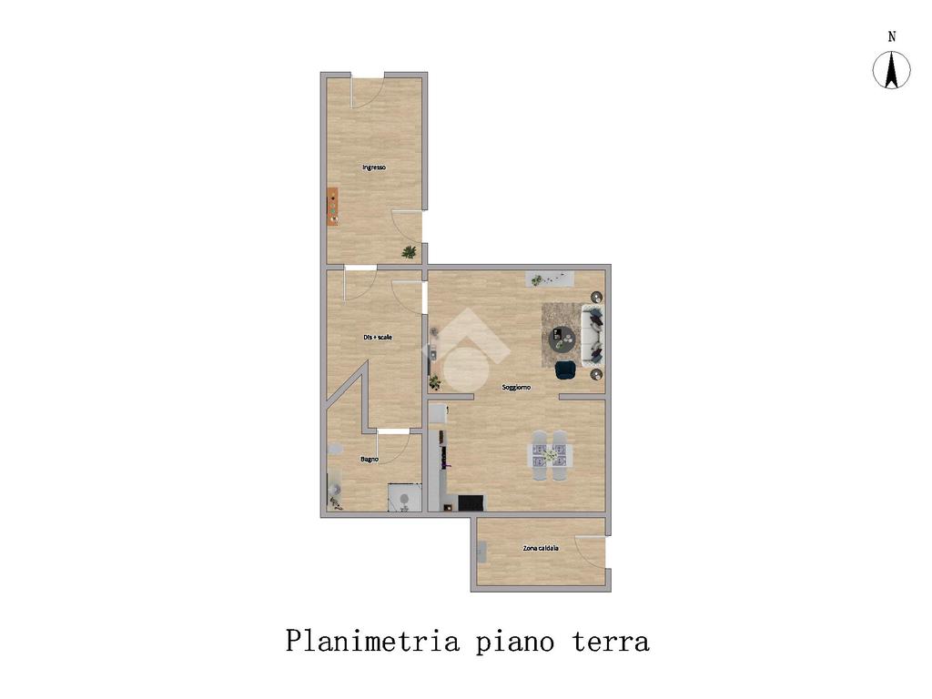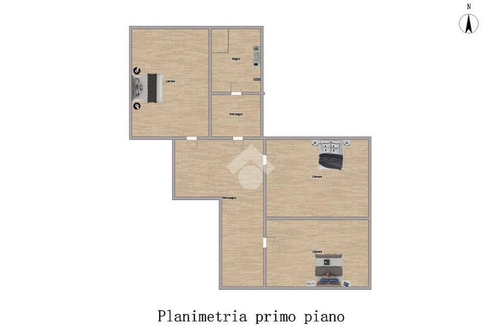 La soluzione sviluppata su due livelli è composta da ingresso, soggiorno con cucina separata ed un bagno finestrato con doccia. Al primo piano troviamo tre camere da letto di cui una matrimoniale ed un bagno finestrato.