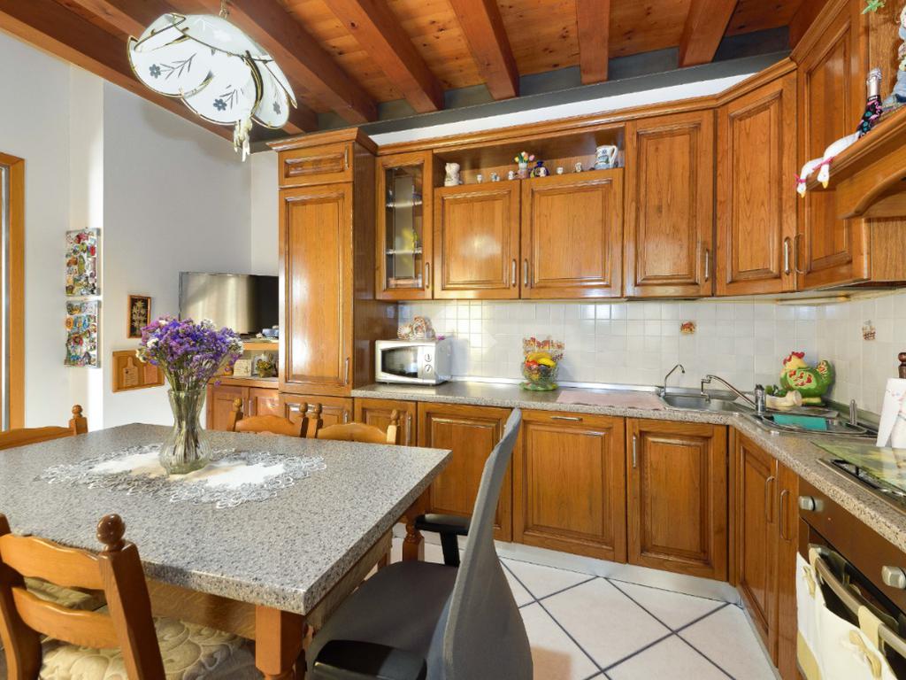 Successivamente, salendo le scale troviamo l'appartamento posto al primo piano con ingresso sul soggiorno, cucina separata ed abitabile, due camere da letto, un comodo ripostiglio ed un bagno finenstrato con vasca.